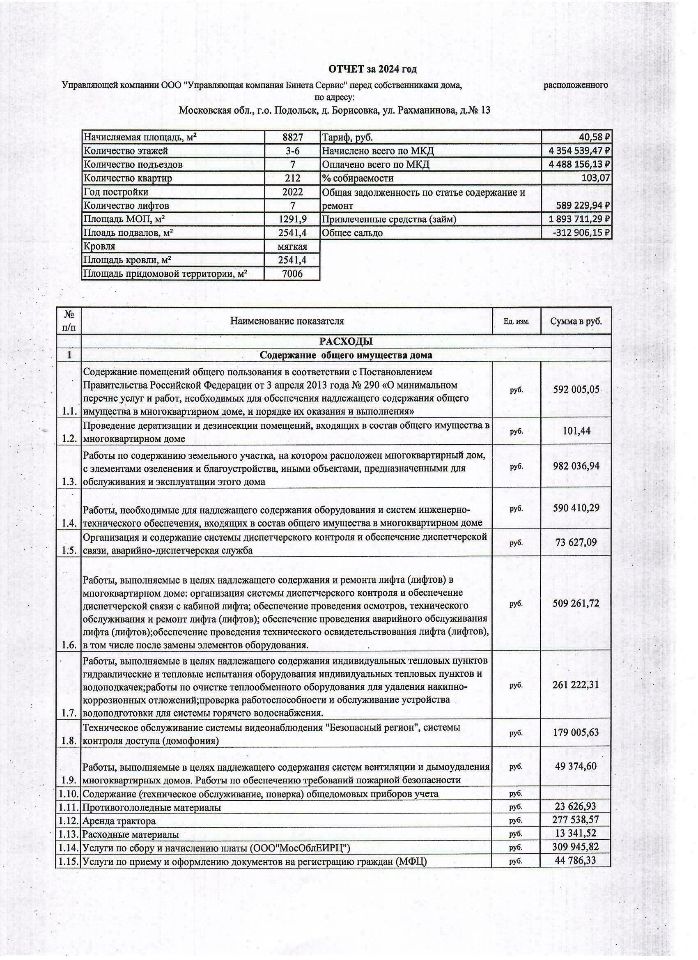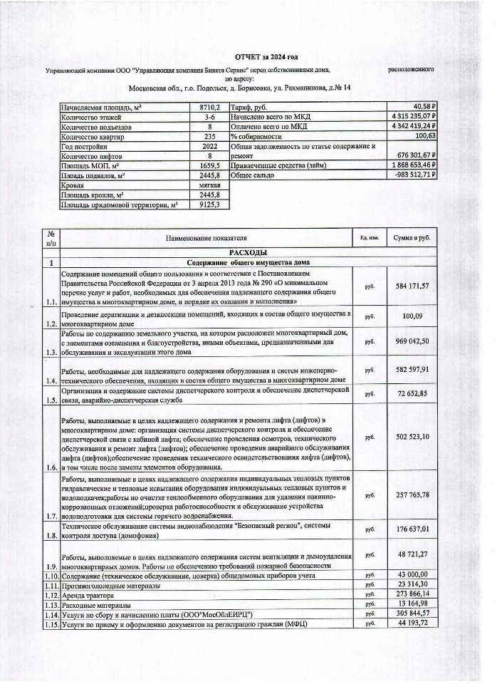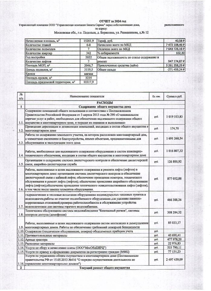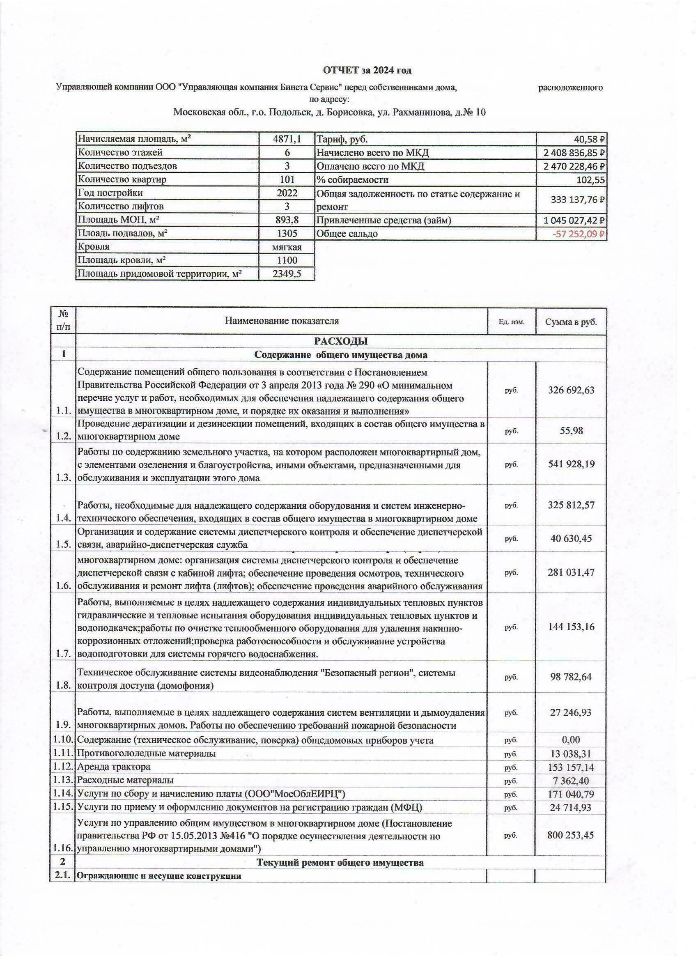 отчет управляющей компании за 2024г