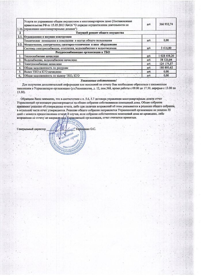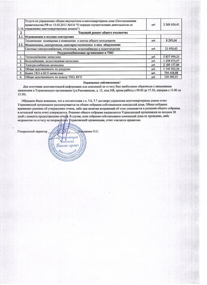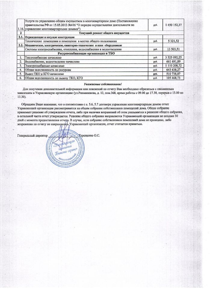 Управляющая организация обязана ежегодно отчитываться перед собственниками. Это закреплено в ч. 11 ст. 162 Жилищного кодекса РФ. Годовой отчет считается основным документом, который издается в рамках деятельности управляющей компании и подписывается руководителем организации.
