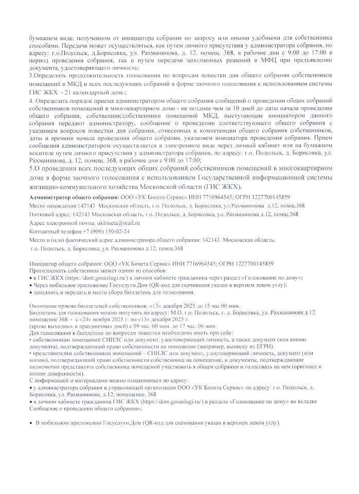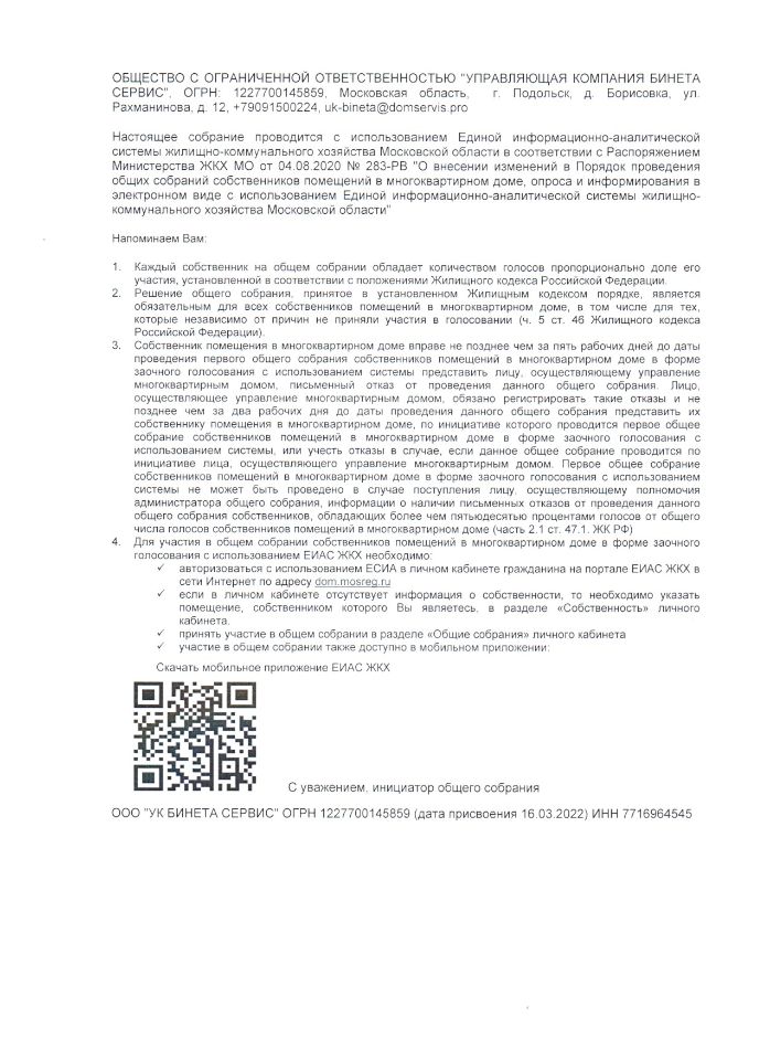 О проведении всех последующих общих собраний собственников в форме заочного голосования с использованием ГИС ЖКХ МО.